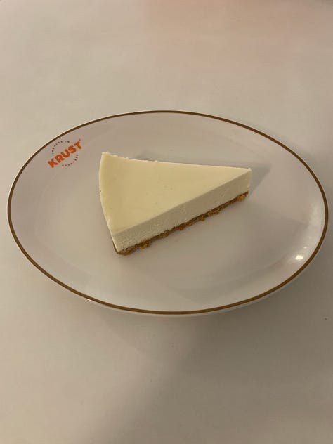 Krust's New York cheesecake is sized for humans, not Instagram. Rich enough to matter. Small enough to finish. Perfect enough to remember.